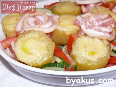 Každý brambor v půlce čajovou lžičkou vydlabeme aby vznikl pohárek